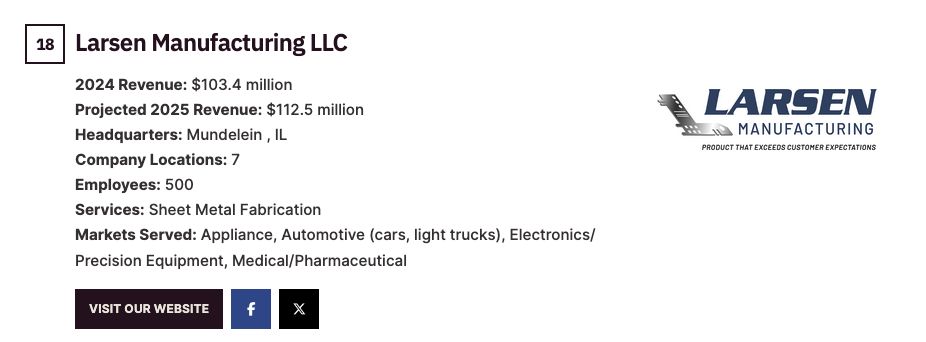 The world of custom metal fabrication is a fiercely competitive landscape, where innovation, quality, and strategic growth are the keys to long-term success. Year after year, Larsen Manufacturing has proven its mastery of these principles, solidifying its position as an industry leader. This legacy of excellence is once again on display as the company secures a coveted spot in the top 20 of The Fabricator’s prestigious 2025 FAB 40 list, a powerful testament to its strength and unwavering commitment to its craft.